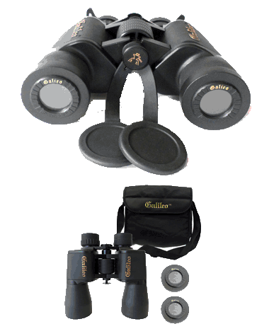 The Galileo G-840WASF features 40mm objective lenses and brings images 8 times closer to you than the naked eye. A set of 2 Solar Filter Caps are included to safely view the sun. The G-840WASF features a Wide Angle design increasing the Field of View (FOV) to 430′!, allowing you to get up close and still see it all. The prisms are positioned in a Porro prism design affording them increased depth perception over other binocular designs. Additionally, the C-840WASF features fully coated optics for improved glare reduction, water resistant comfort grip rubber armoring, full range center focus and binocular tripod socket. Included with the Galileo G-840WASF is a carrying case and neck strap that affords hours of comfortable use, lens cloth and protective eye caps. The Galileo G-840WASF features fully coated optics for improved glare reduction, a 5mm Exit Pupil and exhibits a minimum focusing distance of 12′. Linear Field of View is 430′ at 1000yds and Angular Field of View is 8.2°. The Relative Brightness Index (RBI) is 25 and the Twilight Factor is 17.89. Interpupillary Distance (IPD) ranges from 57mm to 73mm and Eye Relief is approximately 12mm - 14mm.