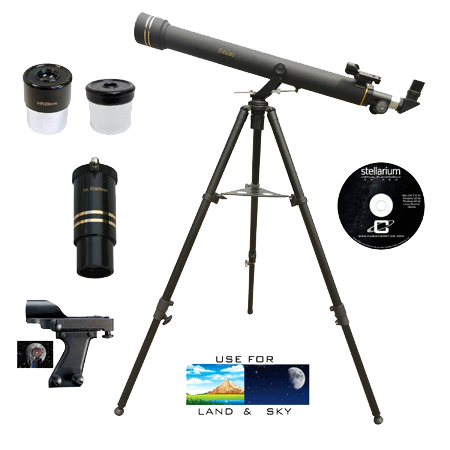 The Galileo G-872BG Refractor Telescope is mounted on an Altitude Azimuth yoke mount. It's easy to up and down, left and right movement is great for beginners and casual star gazers alike. Terrestrial viewing is extremely easy due to the included 45° erect image prism which produces a totally erect image. The Mount features a slow motion altitude adjustment rod for precision adjustments and is attached to a very sturdy, fully adjustable, pre-assembled metal tripod with retractable rubber feet. The telescope’s optical tube assembly is finished out with a large 1¼″ format focuser.