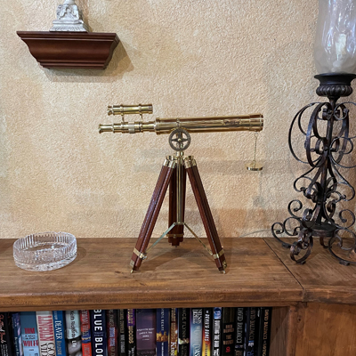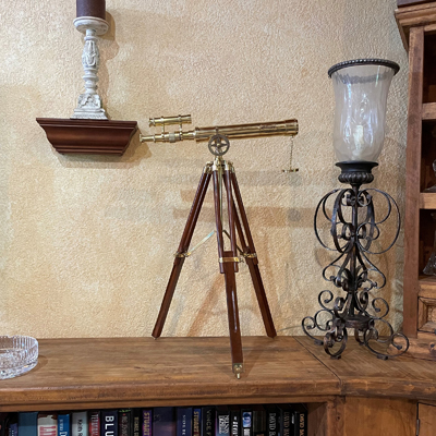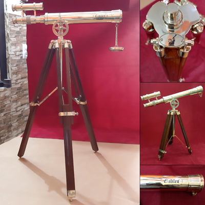 This beautiful Galileo maritime reproduction of a portable tabletop telescope in polished brass is perfect for any home or office. Classic brass nautical telescope comes with decorative Vernier Caliper Scale. The Vernier Caliper consists of two scales, a main scale is fixed and a moving Vernier scale. The main scale has reading in millimeters. Adjustable Sheesham Wood tripod is both durable and beautiful. The 37mm Objective lens is protected by a brass fitted cap attached to the telescope tube by a chain. Perfect accent to any home or office and a handsome gift any time of year.
