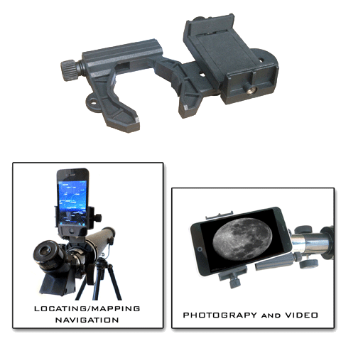 The Galileo SS-872 and Galileo G-SPA Smartphone adapter kit lets you use the camera feature on your smartphone to take pictures or video through the optics of your telescope or use your smartphone to assist navigating your telescope view to your celestial object of interest. The Galileo SS-872 is mounted on an Altitude Azimuth yoke mount. It's easy use up and down, left and right movement is great for beginners and casual star gazers alike. Terrestrial viewing is extremely easy due to the included 45° diagonal which produces a totally erect image. The Mount features a slow-motion altitude adjustment rod for precision adjustments and is attached to a very sturdy, fully adjustable, pre-assembled metal tripod with retractable rubber feet.